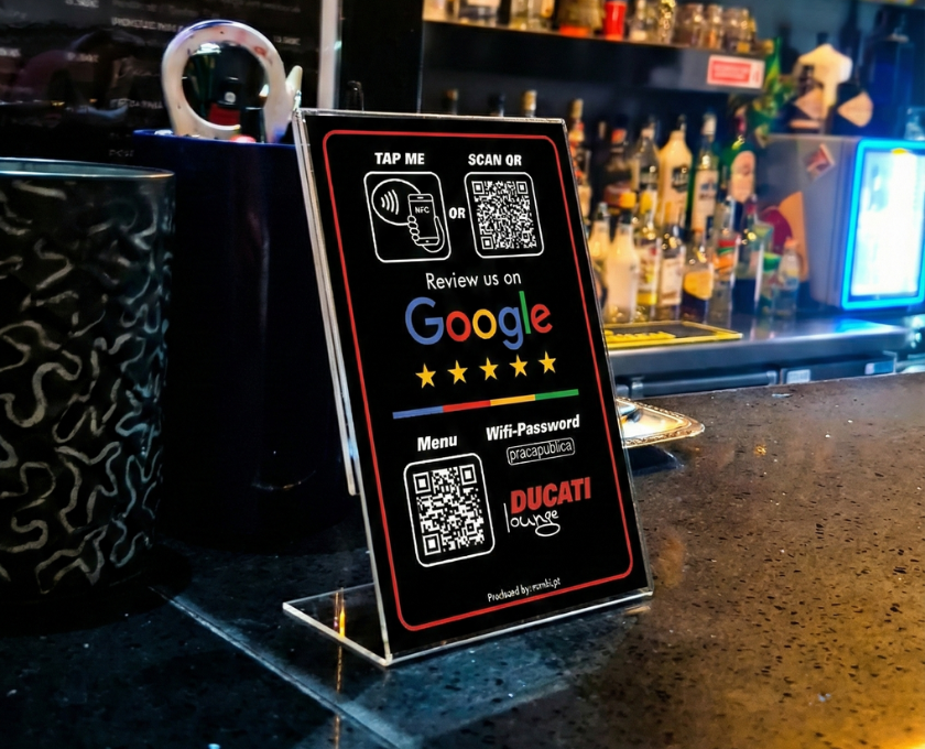 Leve a experiência do cliente para o próximo nível com o Suporte Personalizado ROMBI. Desenhado para empresas que não abdicam da sua identidade visual, este suporte funde a tecnologia de ponta com o branding exclusivo do seu espaço, permitindo integrar desde avaliações até ao seu Menu Digital.