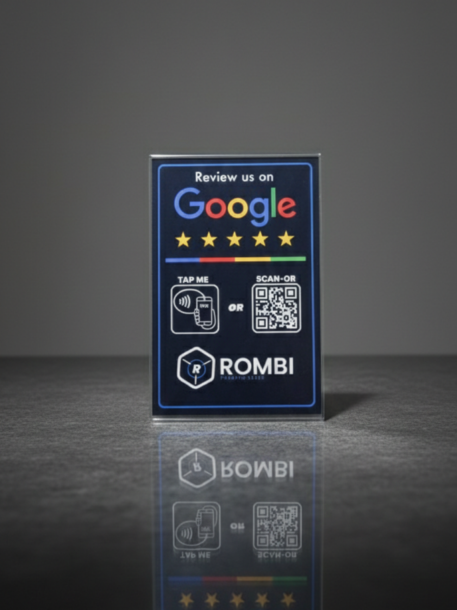 Conetividade Dual-Tech: Integração perfeita de tecnologia NFC e código QR. Quer o cliente prefira um “toque rápido” ou uma “leitura simples”, deixar uma avaliação nunca foi tão imediato.