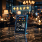 Suporte elegante e de alta durabilidade com dupla tecnologia (NFC e QR Code). Facilita a captação de avaliações num segundo e melhora drasticamente a posição do teu negócio no Google Maps. Configuração técnica incluída.